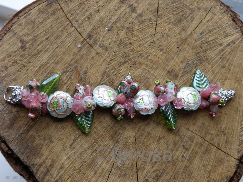 Deze armband heb ik ooit gemaakt en kado gegeven, echter door de sluittkraal en het feit dat ie iets te groot was, was de eigenaresse bang dat ze m kwijt zou raken. Dus het verzoek gekregen er een slotje aan te zetten…hmmm dat betekent dus helemaal slopen en opnieuw maken…maar goed, het is gelukt!