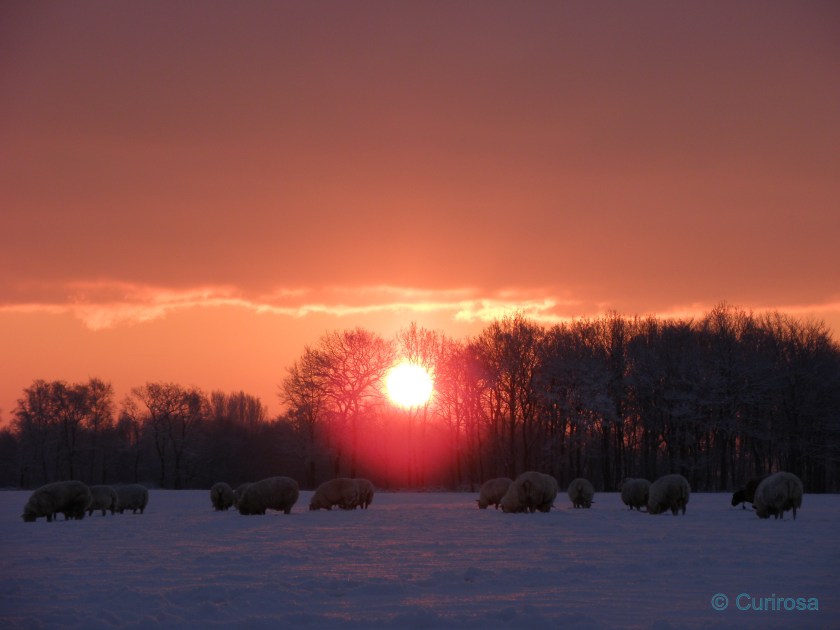 Ook de schapen bij ons in de buurt en de opkomende zon zijn weer goed voor een prachtig plaatje…