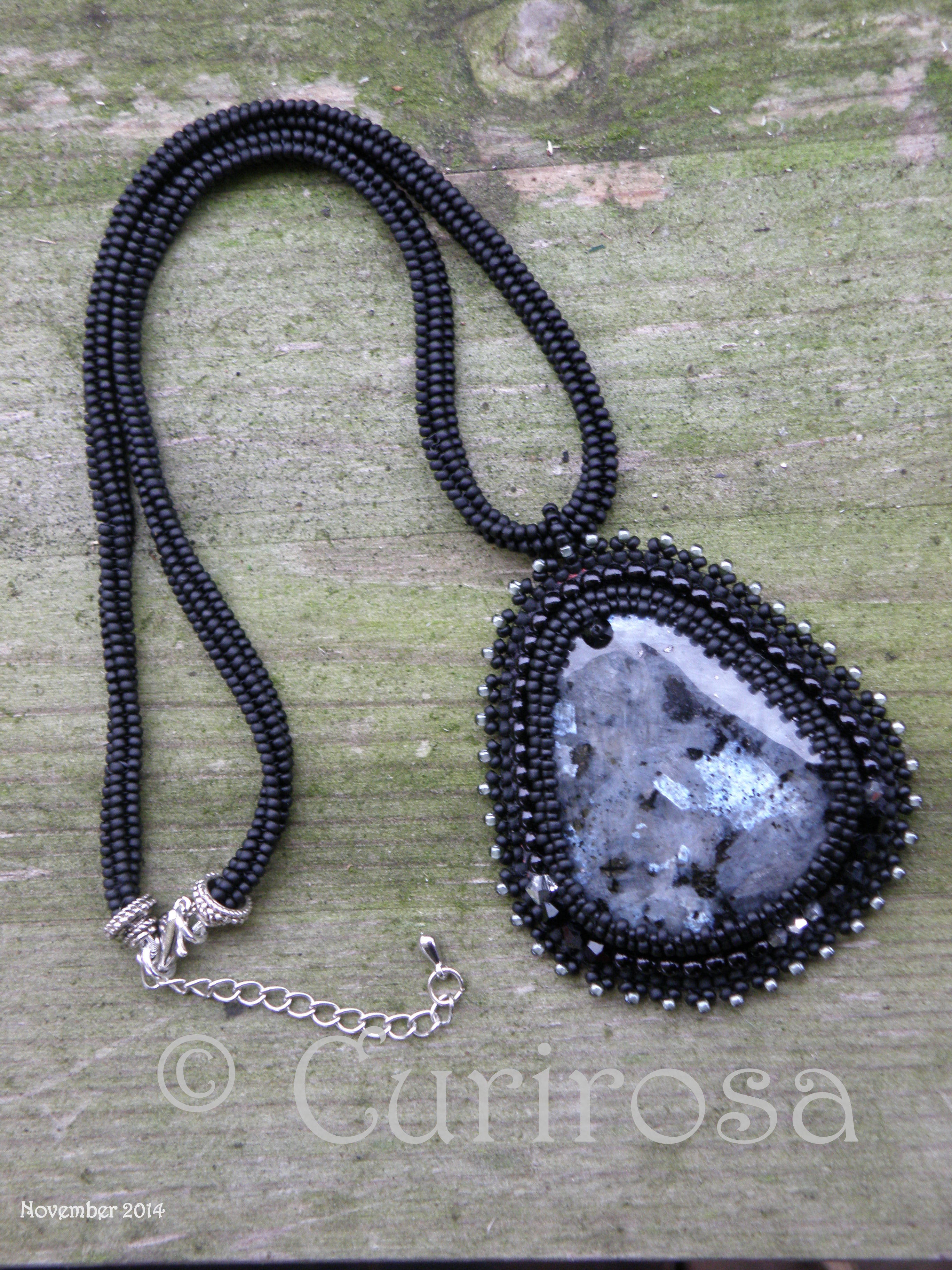 En een prachtige steen die ik al tijden heb, maar nu ineens de smaak en het lef te pakken om er iets mee te maken, ruby in zoïziet, helaas zijn de kleuren op de foto wat fletser dan in het echt. Hij is echt prachtig, al zeg ik het zelf