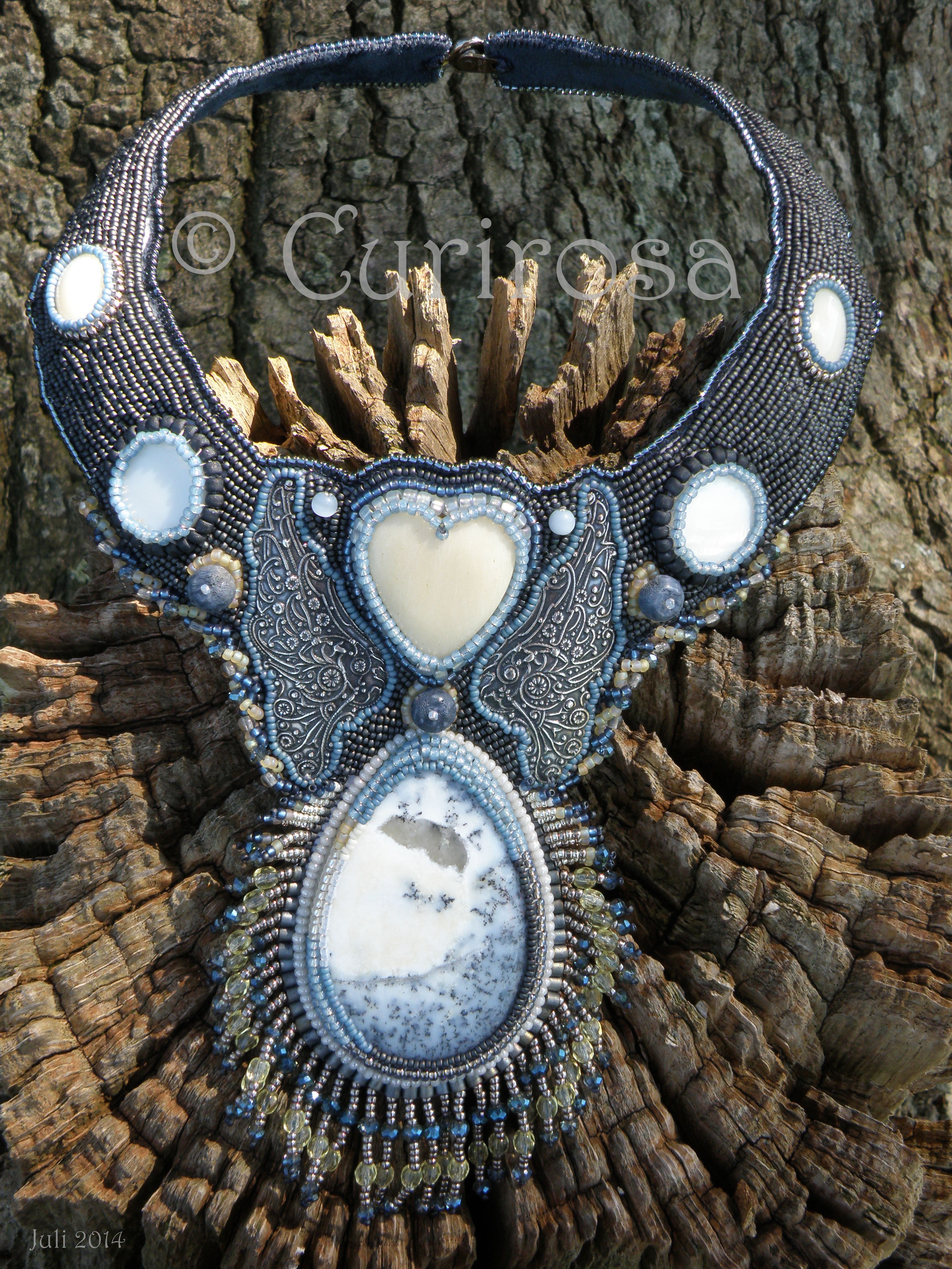 Beadwork, Jewelry, UncategorizedEen creatie waar ik al maandenlang af en toe mee bezig ben geweest. Maar nu dan eindelijk het heerlijke moment waarop kan zeggen: ‘Hij is klaar!’