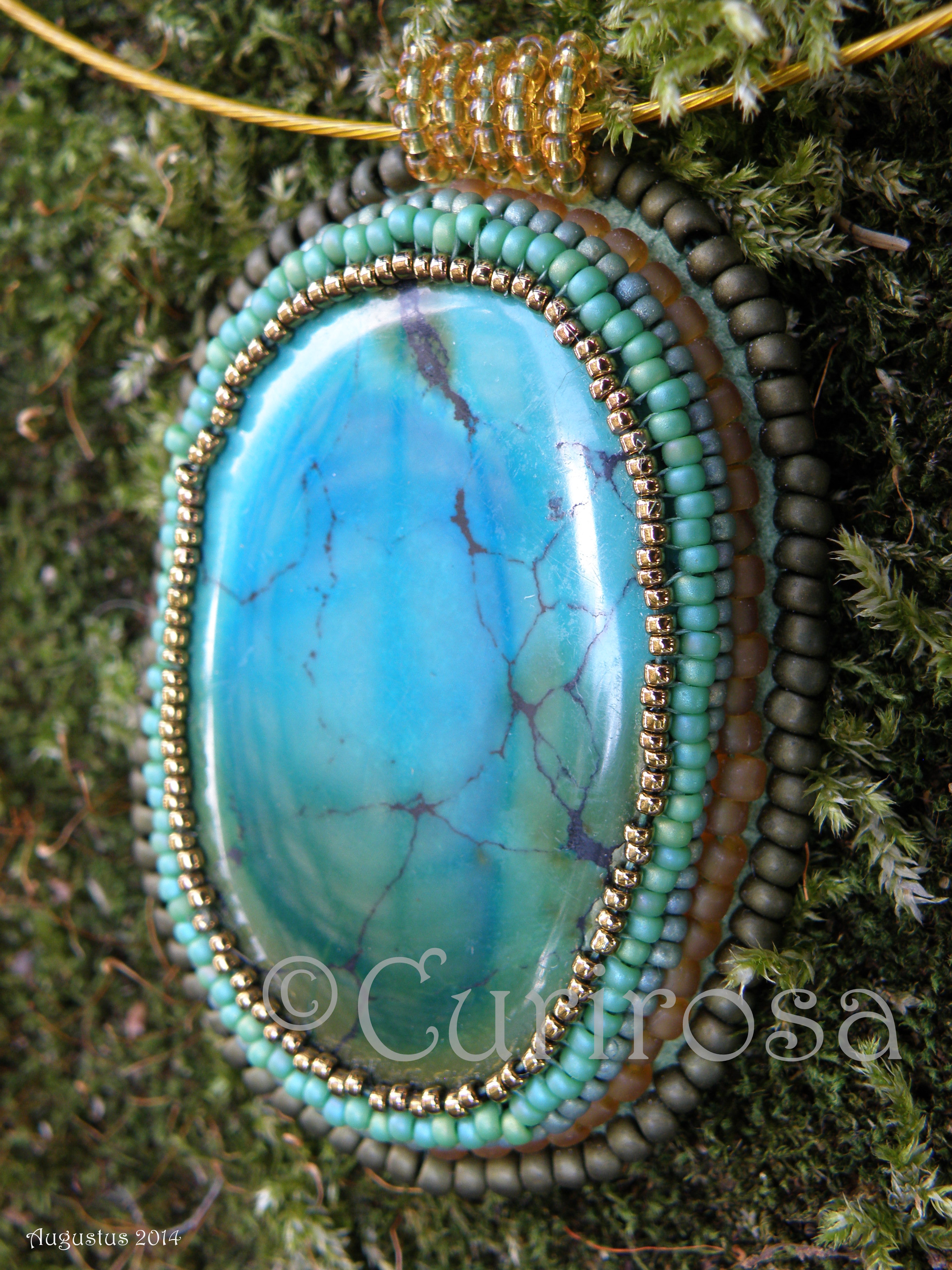 Een mooie turquoise edelsteen cabochonhanger, simpel gehouden in de kleurtinten die ook in de steen zitten.