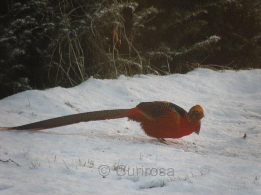 Ik heb al op de buurt rondgevraagd, maar niemand die m kwijt is, dus hij blijft hier maar wonen denk ik…zo knap dat ie ontdekt heeft dat ie mooi onder het dakje beschut op stok kan zitten…geweldig! Heb ik een haan in mijn vogelvoederhok! Dat geloof je toch niet!