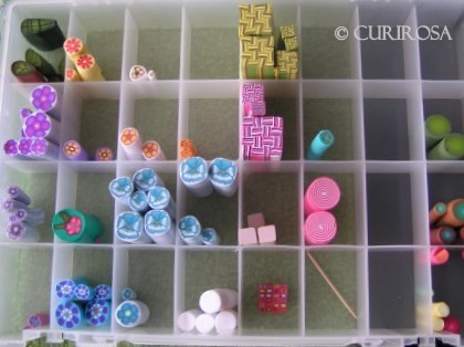 Ik heb al een tijdje niet meer zoveel met mijn klei gedaan, maar op mijn canes ben ik zeer zuinig! In deze bak zitten ook canes van kleivriendinnetje Rian. Die maakt ook zulke mooie bloemencanes.